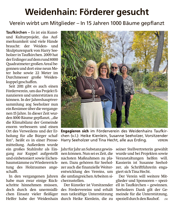 Der Weiden- und Skulpturenpark in Taufkirchen an der Vils nimmt stetig Formen an und erfreut sich größter Beliebtheit. Künstler Harry S. wurde für die Verwirklichung seines Lebenstraums mit dem Tassilopreis der Süddeutschen Zeitung ausgezeichnet.
